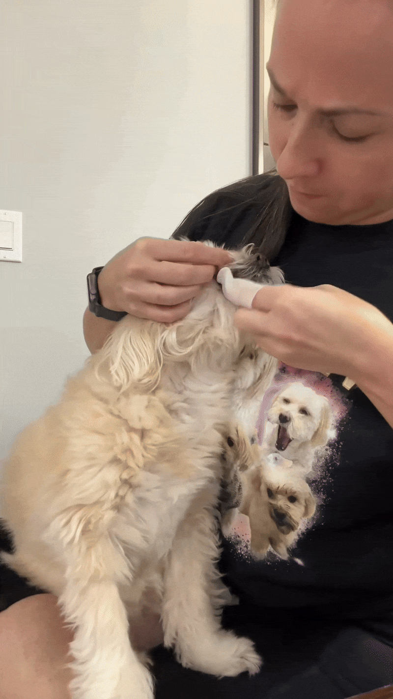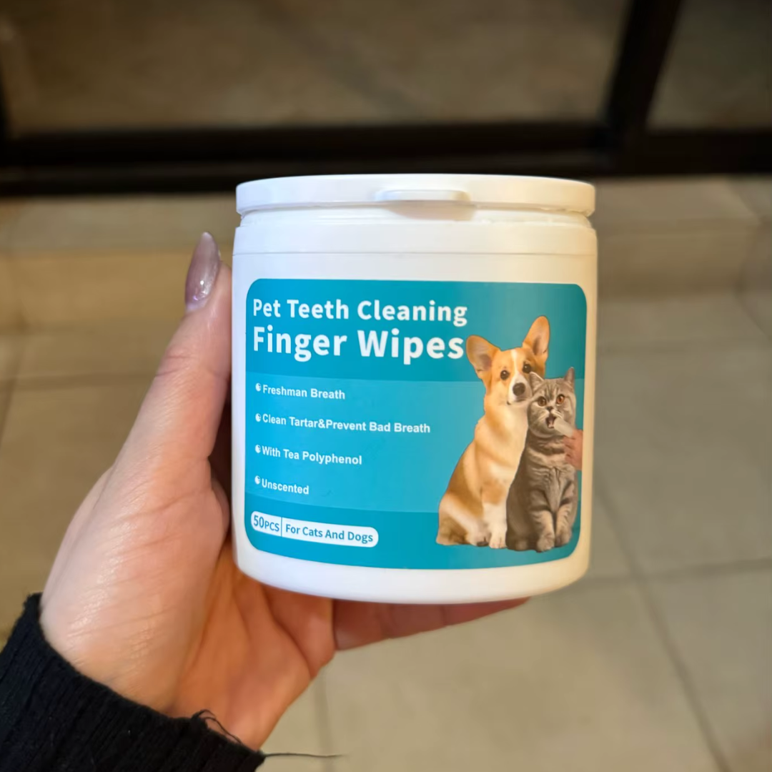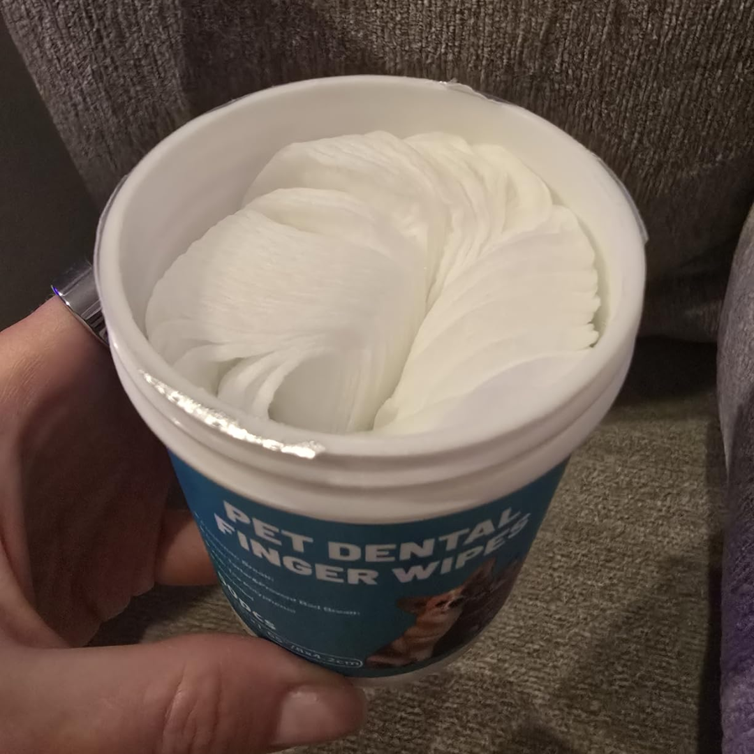 PuppyWipes convierte la higiene dental en un momento sencillo y sin estrés. Solo pasas la toallita sobre los dientes y encías, y su textura especial ayuda a remover placa y residuos de comida.
